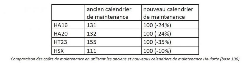 La maintenance est un élément clé dans le calcul du coût total de possession. Depuis plus d’un an, Haulotte a lancé un programme de standardisation et d’optimisation de la maintenance. Ce projet centré client se traduit par une amélioration significative du TCO des machines Haulotte, qui sont parmi les plus économiques à entretenir sur le marché.