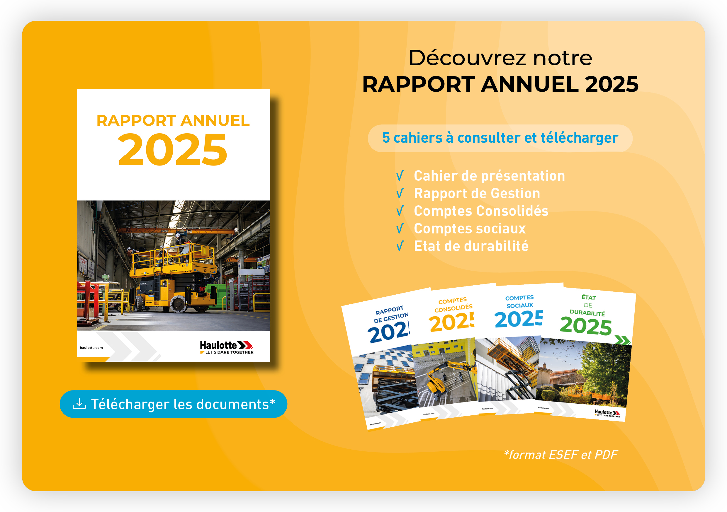 Ce document est tenu gratuitement à la disposition du public dans les conditions prévues par la réglementation en vigueur au siège social de Haulotte Group (Rue Emile Zola, CS30045, 42420 Lorette) et peut être consulté dans la partie « Espace Investisseurs – Rapports annuels » du site Internet du Groupe à l’adresse suivante :
